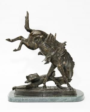Bronco buster, bronze à patine brune, signé, socle en marbre ver...