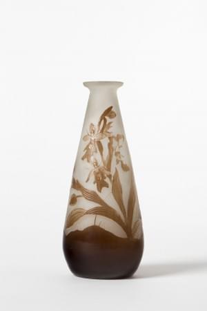 Verre multicouche dégagé à l'acide, à décor d'orchidées, H 23 cm