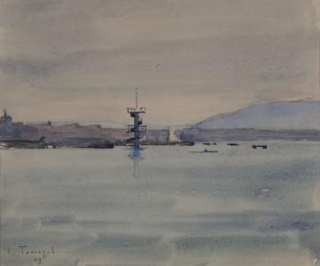 Bains des Pâquis, aquarelle sur papier, signée et datée 1943, 20...
