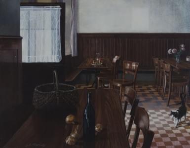 Intérieur à la lampe, huile sur toile, signée et datée 1968 au d...
