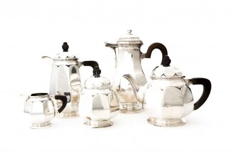 France, circa 1930, argent, comprenant: deux verseuses, une théi...