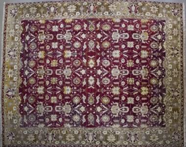 Velours de laine à motif floral sur fond bordeaux, 350x250 cm. P...