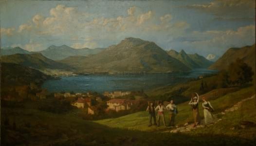 Paysage lacustre au Tessin, huile sur toile, signée et datée 190...