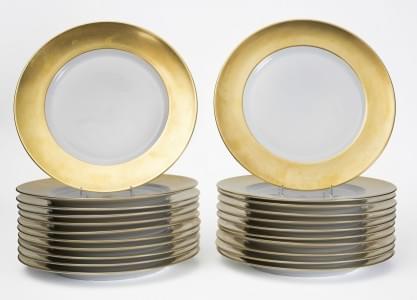 1139. Limoges, suite de 20 assiettes de présentation à marli doré mat,