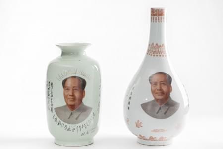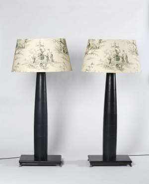 L'un balustre, l'autre cylindrique, porcelaine à décor imprimé d...