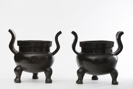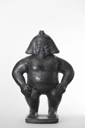 Terre cuite vernissée métallique noire, H 77 cm. Collection Davi...