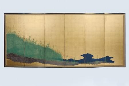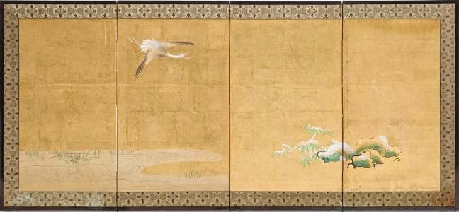 Grès émaillé et laqué noir et or à décor dans des réserves de mo...