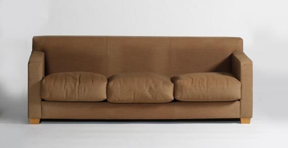 Canapé club, modèle de 1930, chêne et tissu crème. Collection Da...