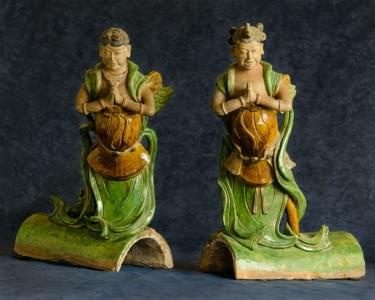 1189. Deux tuiles faitières, sancai, Chine, dynastie Ming (1368-1644)