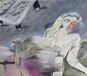Silhouette d'homme et dindon, huile sur toile, 120x140 cm. Colle...