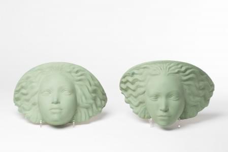 Plâtre patiné vert figurant des visages, H 23 cm. Collection Dav...