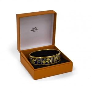 3009. Hermès, bracelet émaillé à décor de parures amérindiennes en plu...