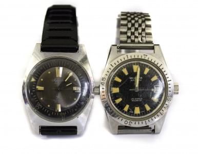 3030. Helvetia et Astrolux, lot de deux montres rondes mécaniques sans...