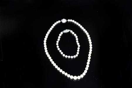 Fermoir en or gris 585 serti d'une perle, L 40 cm. On joint un b...