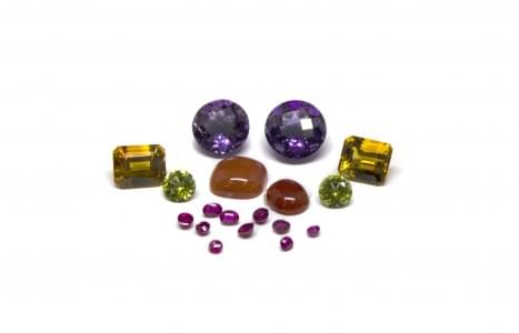 Lot de pierres sur papier comprenant deux améthystes taille bril...