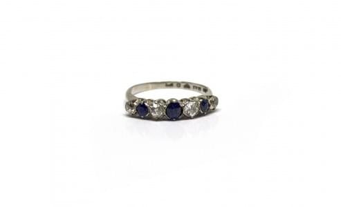 3091. Anneau serti de saphirs et de diamants taille ancienne en altern...
