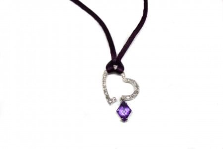3095. Collier à motif de cœur serti de diamants retenant une améthyste...