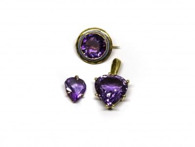 3097. Lot d'une broche et de deux pendentifs sertis d'améthystes