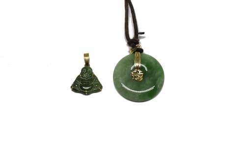 Monture en or 750, D 3 cm. On joint un pendentif bouddha en jade...