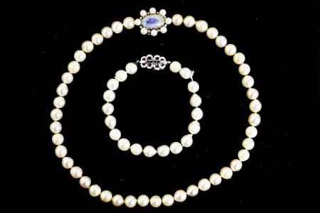 Fermoir en or gris 750, L 42 cm. On joint un bracelet de perles...