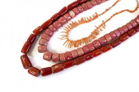 3113. Lot de trois colliers en corail et bambou de corail