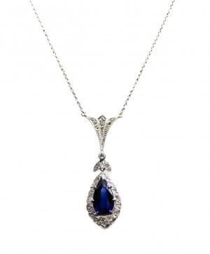 3123. Collier Art déco retenant un pendentif serti d'un saphir synthét...