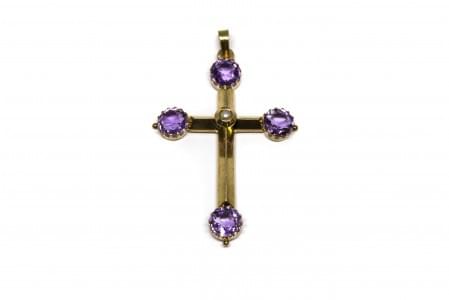 3124. Croix sertie d'améthystes taille brillant ancien et centrée d'un...
