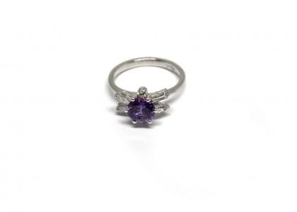 3126. Bague sertie d'un saphir violet taille brillant prob. synthétiqu...