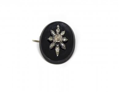 3134. Broche onyx serti de diamants anciens en rose