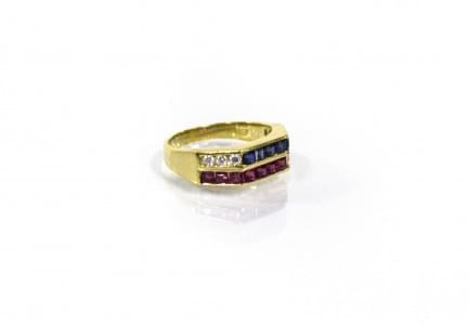 3137. Bague sertie d'une ligne de rubis et d'une ligne de saphirs épau...