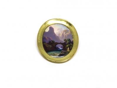 3139. Broche ovale sertie d'une miniature émaillée sur porcelaine à dé...