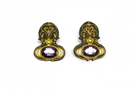 3172. Créoles retenant des motifs sertis d'améthystes taille ovale