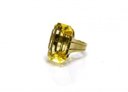 3150. Bague sertie d'une citrine taille rectangle (env. 27 ct)