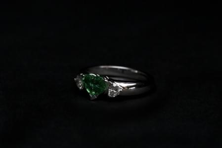 3161. Bague sertie d'une émeraude taille cœur épaulée de diamants tail...