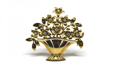 3166. Broche à motif de panier fleuri serti de diamants