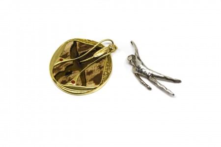 Travail ancien, or 750 et argent, D env. 2,5 cm, 6 g