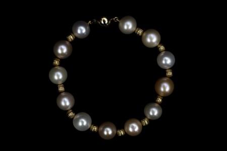 3170. Bracelet de perles d'eau douce alternées de perles d'or
