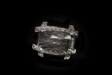 3174. Bague sertie d'un quartz à inclusions "flèches d'amour" entouré...