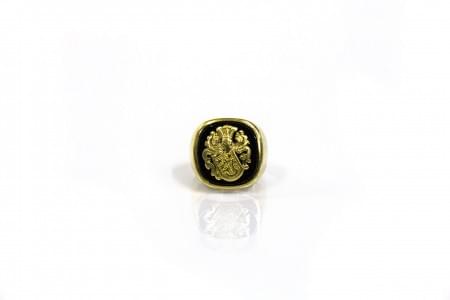 3176. Bague chevalière sertie d'une plaque d'onyx ornée d'armoiries