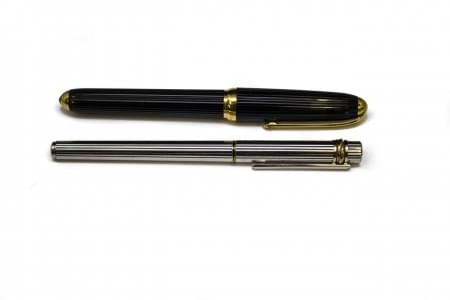 Deux stylos plumes Dupont et Tabbah en résine noire et métal arg...