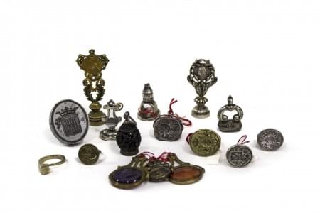 3249. Ensemble d'environ 30 cachets à décor de personnages et bustes d...