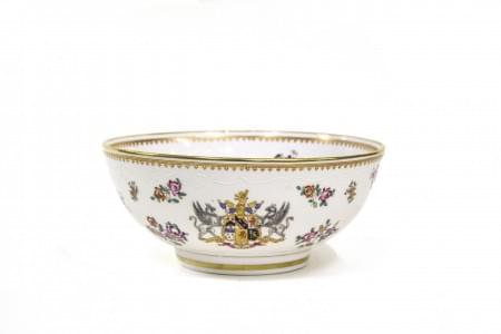 Porcelaine, à décor de fleurs polychromes et d'armoiries D 25,5...