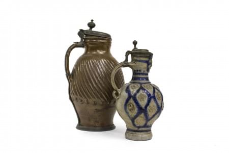 Faïence, à décor de fleurs, D 23 cm, H 20 et H 16 cm