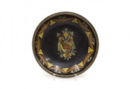 3268. Assiette à marli bleu nuit orné de rinceaux dorés et au centre d...