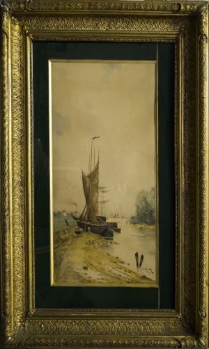 Bâteaux amarrés, aquarelle, signée et datée 1894, Rouen, 23x43 c...