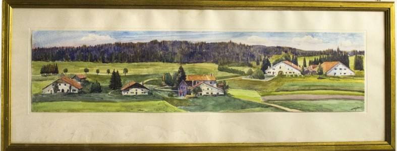 Paysage du Jura, aquarelle sur papier, signée, 16x68 cm