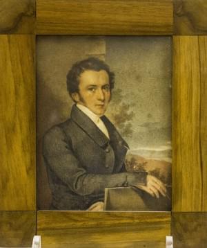 Portrait d'un peintre, miniature, gouache et aquarelle sur papie...