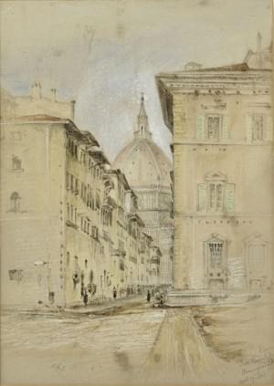 Vue du dôme de Florence prise de la place de l'Annunziata, craie...
