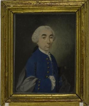 Gentilhomme en veste bleue, miniature sur papier, 10x8 cm