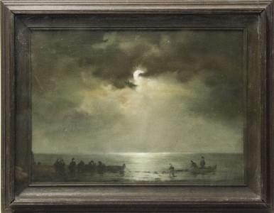 Pêcheurs en bord de mer, huile sur toile, 40x53 cm